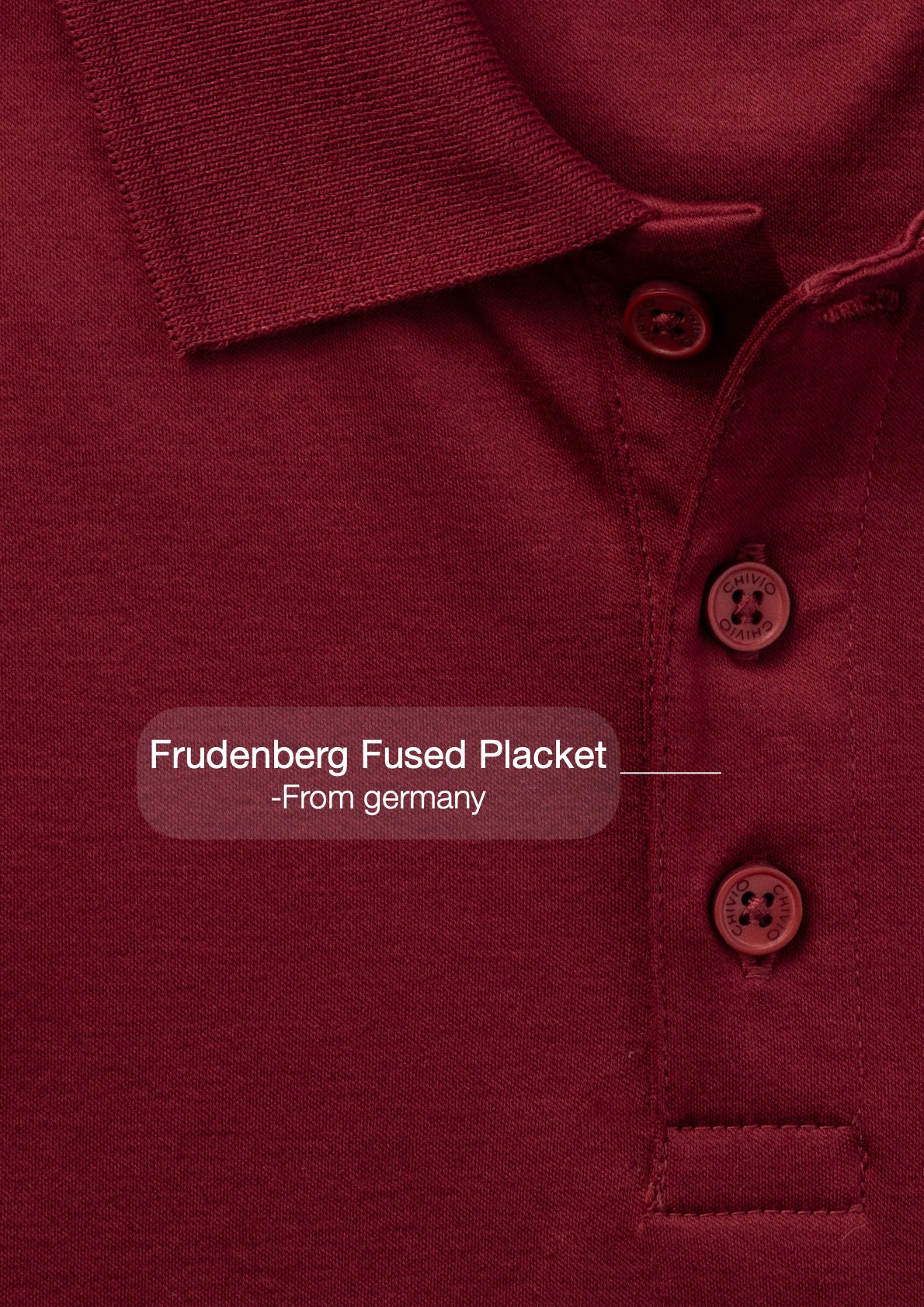 - Placket reinforced with Freudenberg interlining (for stability over time)